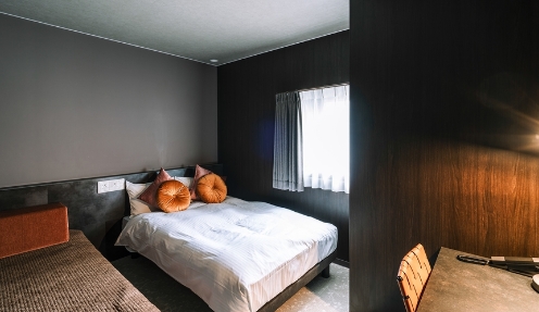 こちらの北茨城のホテルはコンパクトな空間を強みにとらえて、さらにシメ色になる黒とアイアンなどのインダストリアルなテキスタイル、それに相性の良いヴィンテージウッドを基調にコンパクト×compact×色味を消す事で奥行きが生まれ使い勝手の良さが強調されたホテルに仕上がったと感じてます。
